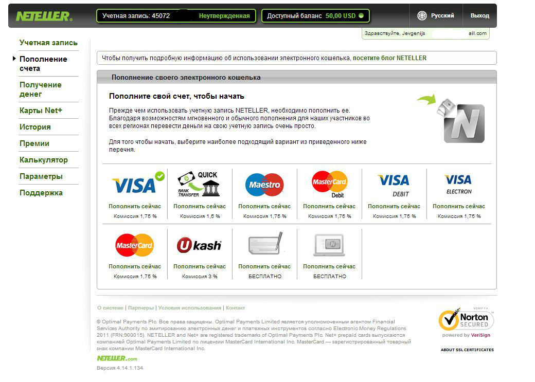 - Сделай депозит в Neteller одним из предлагаемых способов