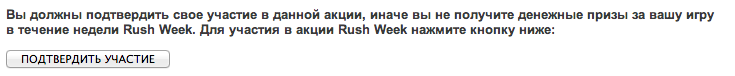 Для того чтобы принять участие в акции, необходимо в кассе комнаты зайти в "my promotions" и перейти на страницу со списком акций, где появится возможность подтвердить участие в "Rush Week".