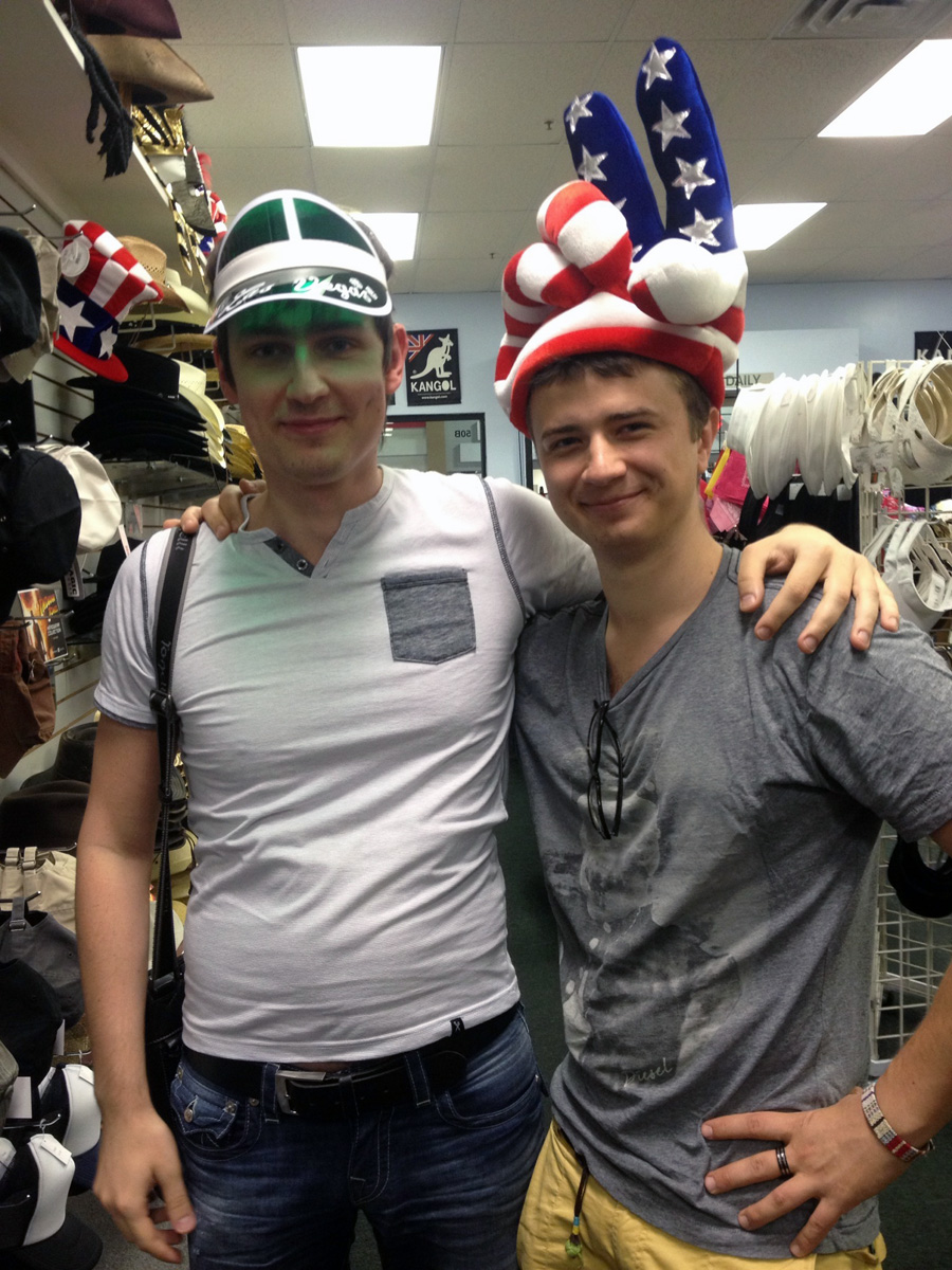 Кстати, вот фотка - мы нашли магазин прикольных шляп, я пообещал, что в следующем году каждый день мейна буду играть в разных, по типу этих.