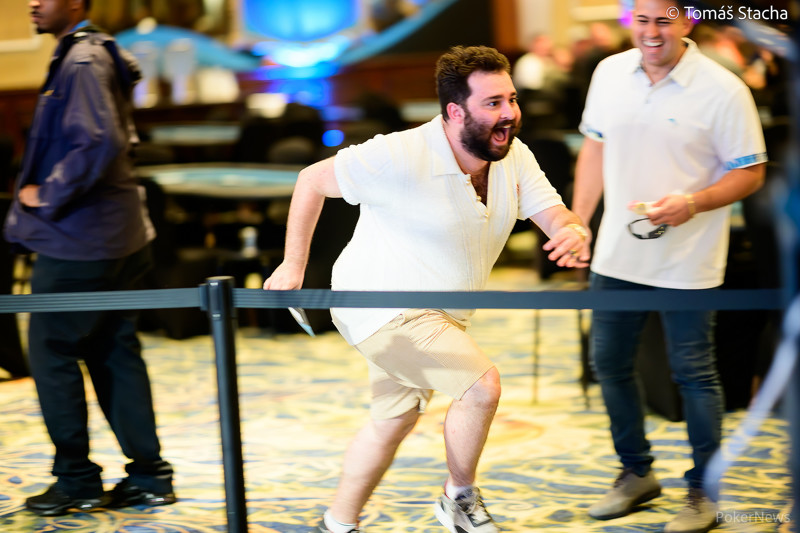 Пробежка Джереми на фотографии — это его реакция на заветные $500,000, которые он увидел на карточке из конверта «таинственного баунти» во время $1,650 WSOP Paradise Mystery Millions.