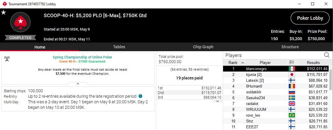SCOOP-40-H $5200 PLO [6-Max] — призовые $152,011