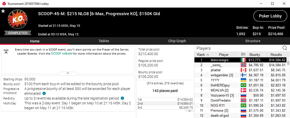 SCOOP-45-M $215 NLO8 [6-Max, PKO] — призовые $28,358 с учетом баунти.