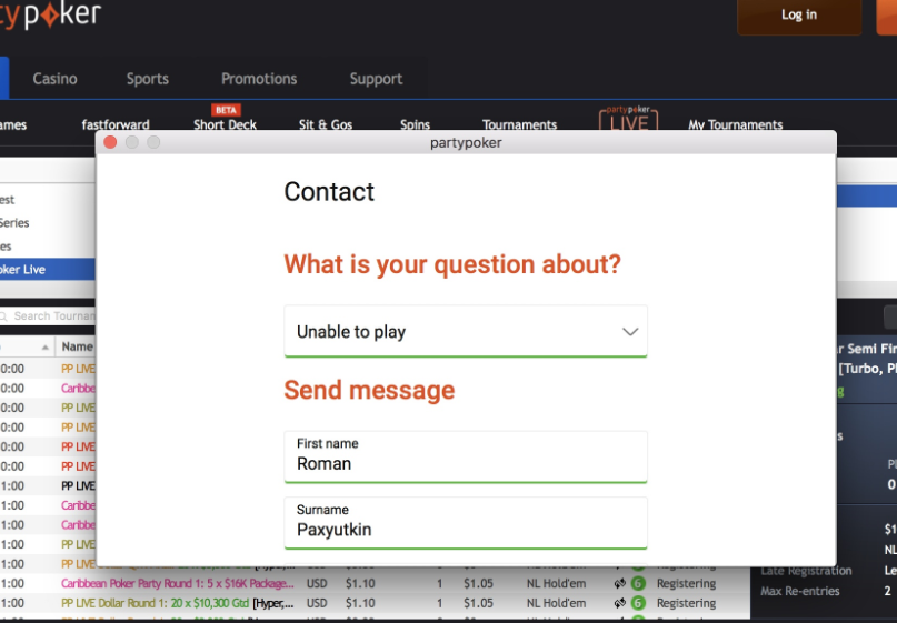 Мы берем 5 покерных румов: PokerStars, partypoker, Покердом, 888poker, PokerOK. Четырем румам я написал в службу поддержку на e-мейл, а в partypoker через обратную связь в клиентe рума следущее письмо: