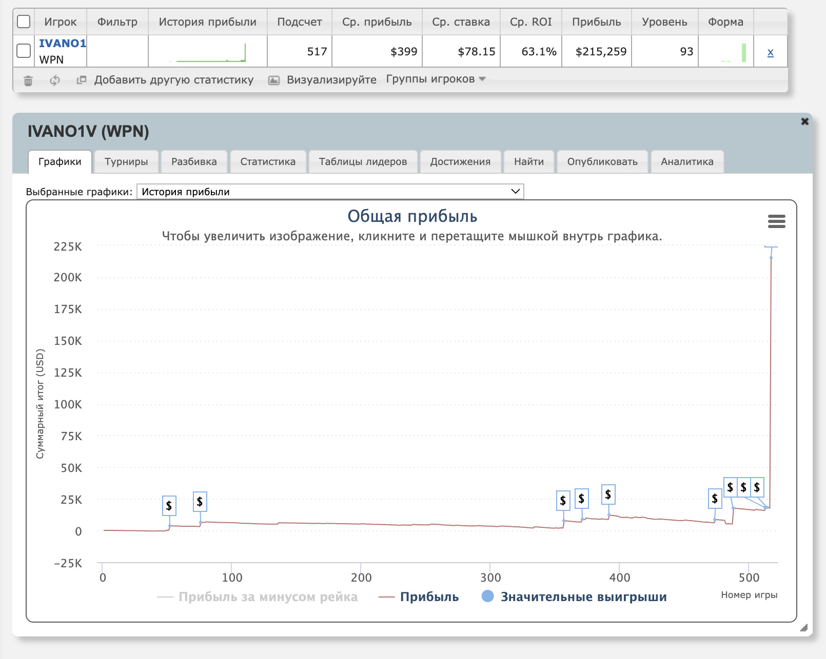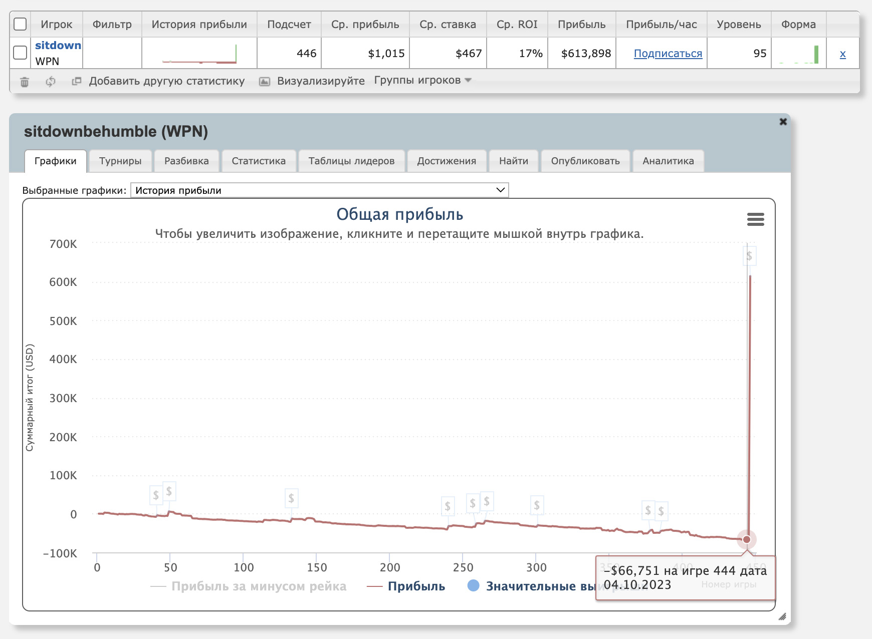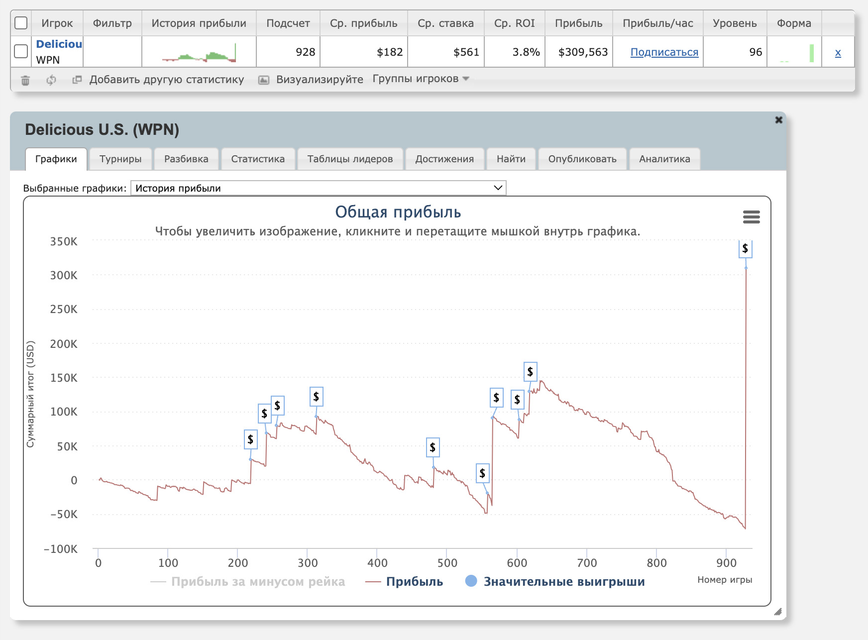 Благодаря дипрану Венома Delicious U.S. выбрался из даунстрика. С января 2023 года он закатал $216K за 300 турниров.