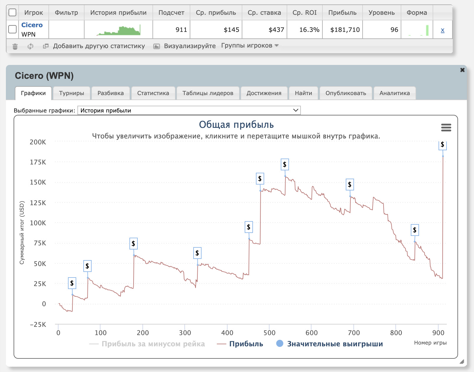 В этом году на PokerKing «Cicero» поймал даунстрик на $120K.
