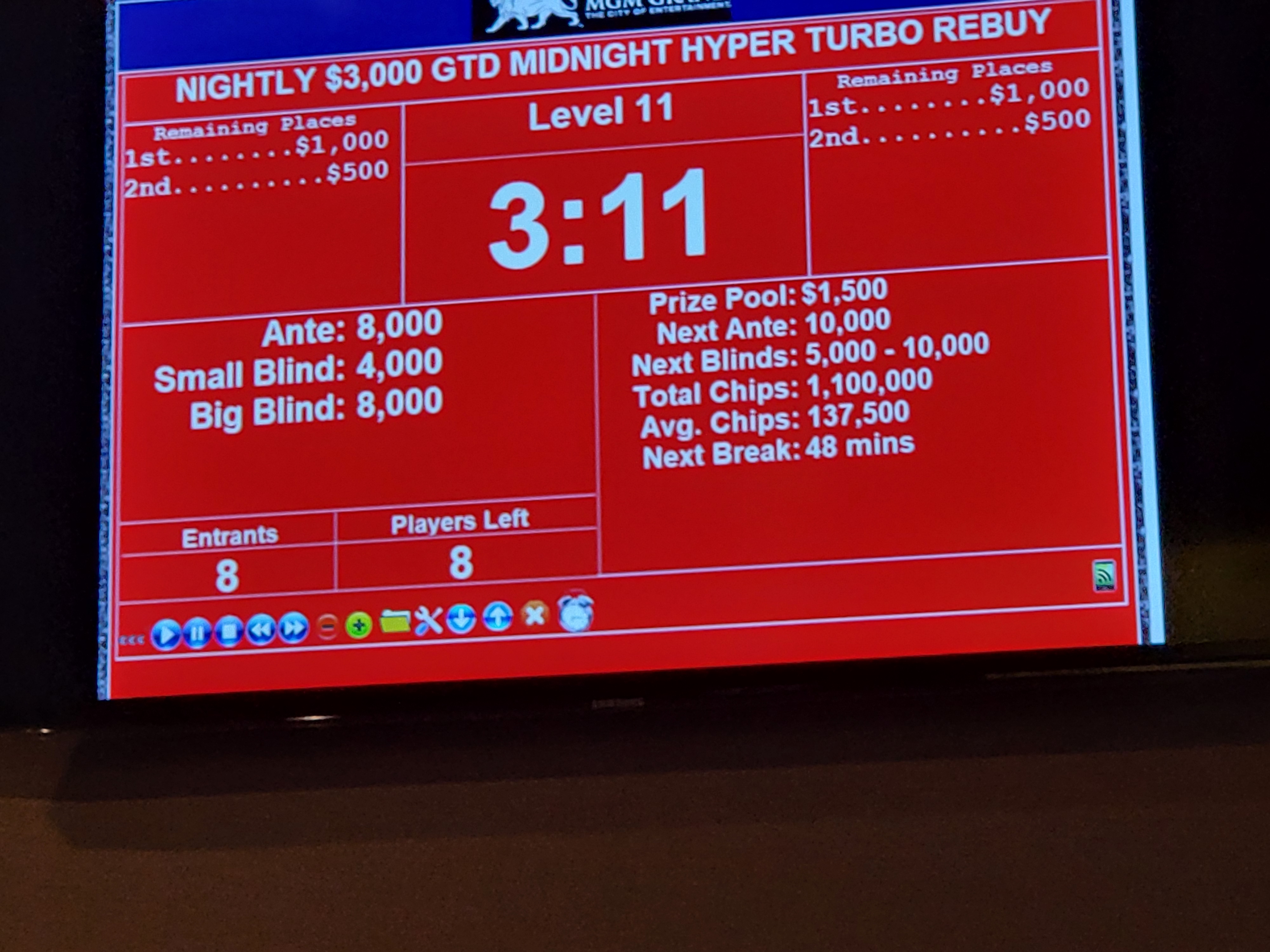А ещё после серии в MGM Grand прошёл турнир за $100 с гарантией $3K, где по итогу выплатили $1,5K.