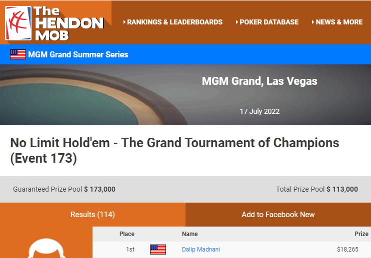 Потом сотрудники MGM вычли из призового фонда $30K — эту сумму распределили среди топ-15 лидерборда серии. Выплата победителю составила $20,675. Игрок за моим столом возмутился против уменьшения призового фонда до $143K. Сотрудники MGM объявили внеплановый перерыв, после чего опубликовали призовой фонд в $113K. И больше не показывали окончательных выплат.