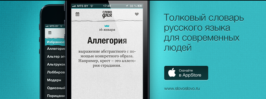 P.S. Тем кому интересно "Слово дня", но телефон не от Apple, можно смотреть новые слова в группах ВКонтакте и Facebook или по Twitter