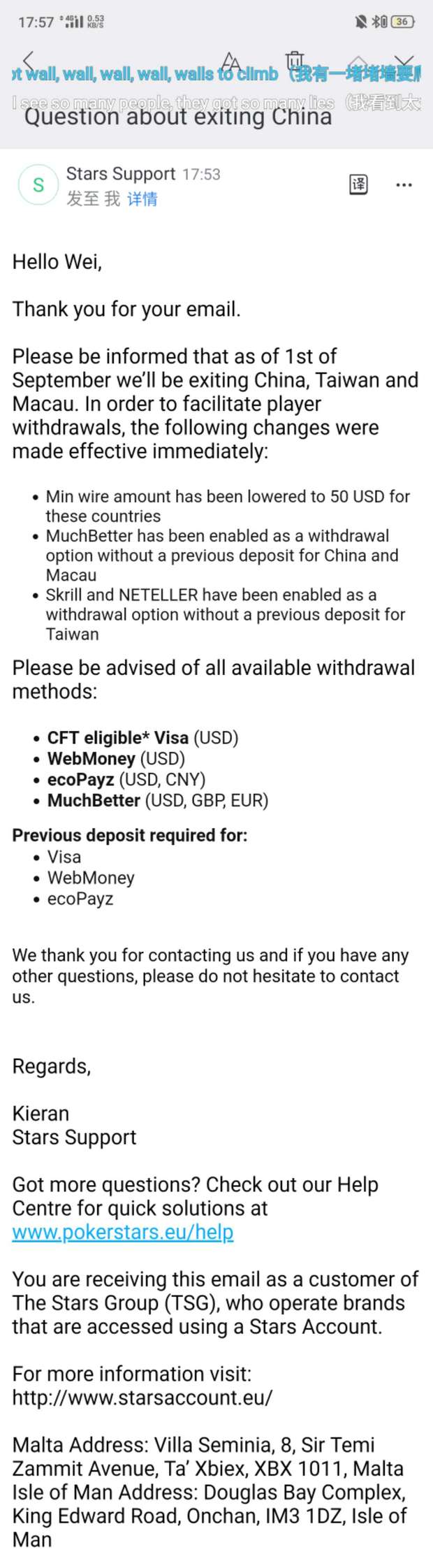 В сети ходит слух, что PokerStars покидает рынок Китая, Тайваня и Макао. Причем решение, вероятно, было принято в родительской компании Старзов, Flutter Entertainment.