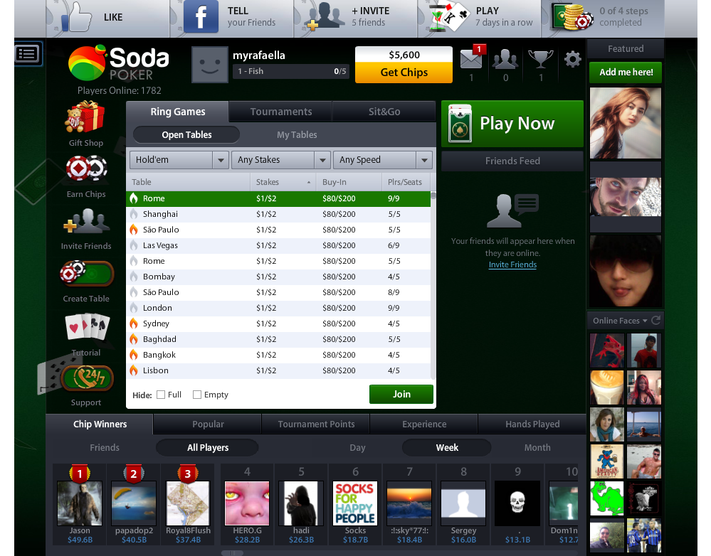 Игровой клиент Sodapoker ничем не уступает своим "социальным братьям", а в некоторых моментах даже лучше.