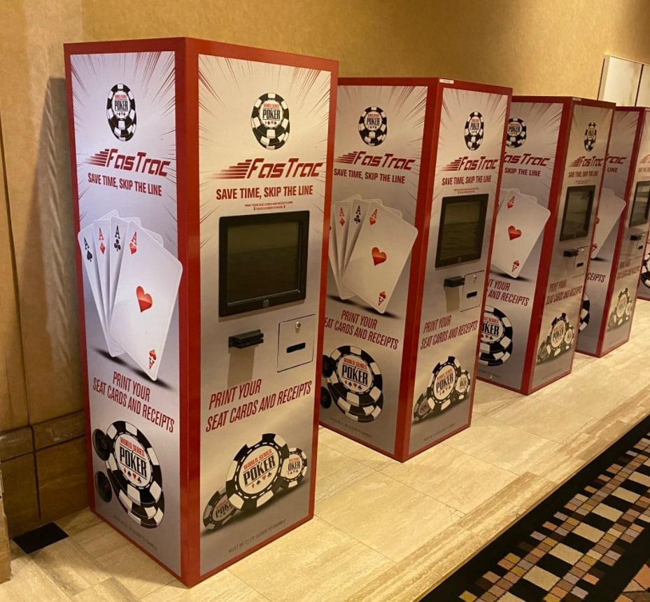- Заведите себе специальный аккаунт WSOP и пополните его баланс (можно сделать перевод, можно принести кэш в кассу). Далее вам предложат установить приложение, с помощью которого можно зарегистрироваться в любом событии WSOP. На территории казино вам только останется распечатать квиток для посадки в турнир — для этого будут установлены специальные автоматы FasTrac.
