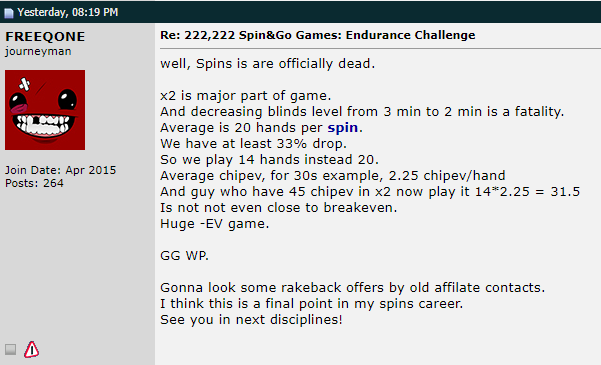 Однако, есть и те, кто не теряет надежду побить спины и с такими изменениями. Так, пользователь H@mp нейтрально оценил перемены, сравнив новую структуру cо Spin&Go Flash на PokerStars
