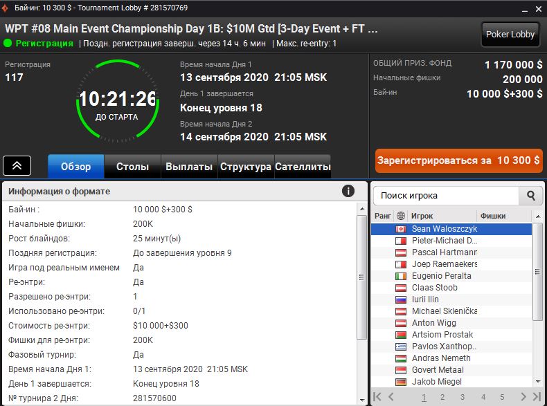 Главным событие станет $10.300 Day 1B Main Event $10.000.000 GTD. В первый игровой день в этом турнире участвовал 521 игрок.