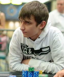 потерял почти половину своего стека. Дмитрий делает опен-рэйз, Макс Лехмански делает 3-бет, наш игрок идёт в олл-ин. Макс инста-коллирует, имея на руках A[c]T[c].