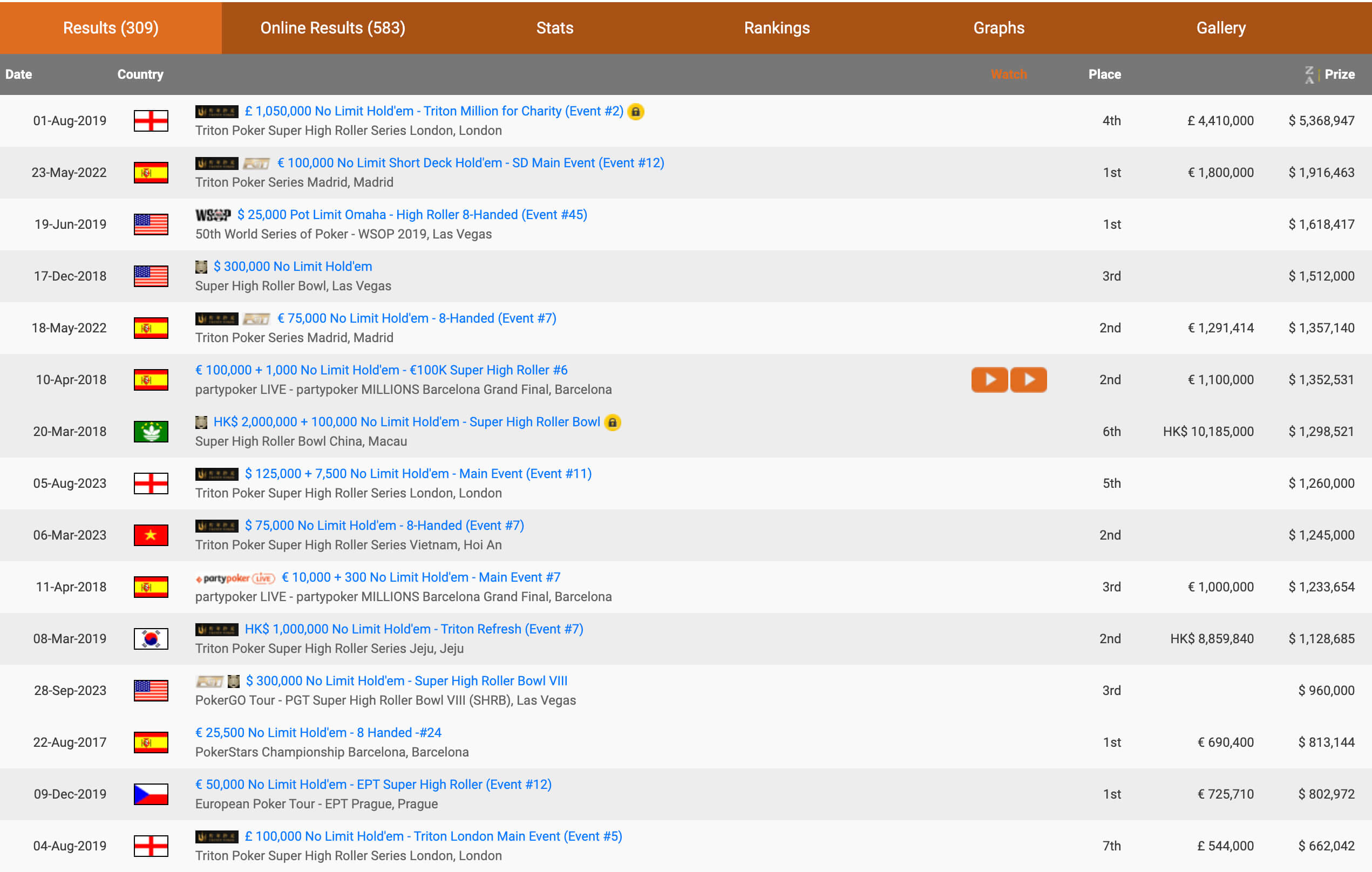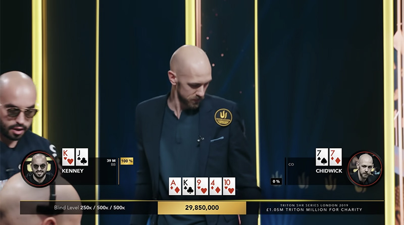 Свой бест-кеш Чидвик оформил на турнире Triton Million London 2019, заняв 4 место ($5,3M). Именно в этом турнире он сыграл одну из самых важных раздач в жизни.