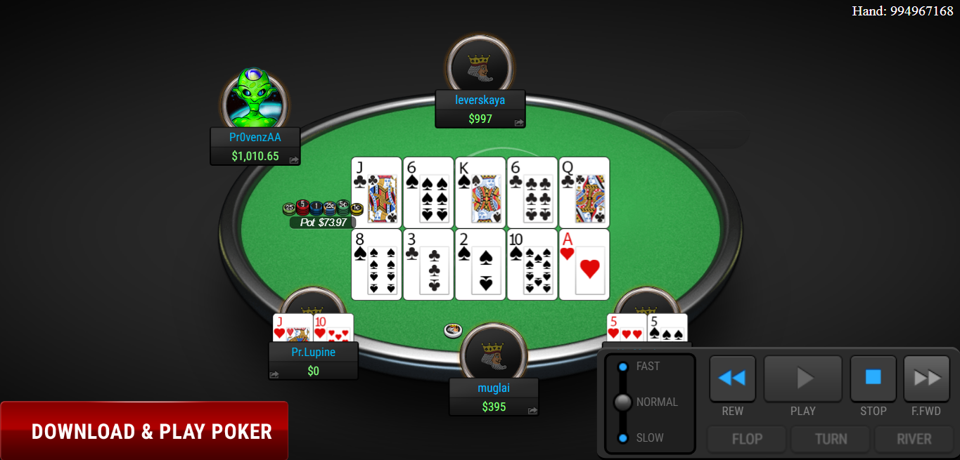 Следить за игрой за любым кеш-столом можно, правда, никнеймы игроков будут обозначаться как «Player 1», «Player 2», размер стека как «$***», а аватары будут скрыты.