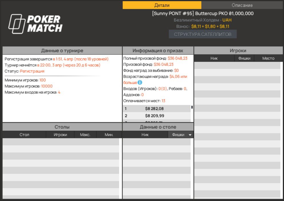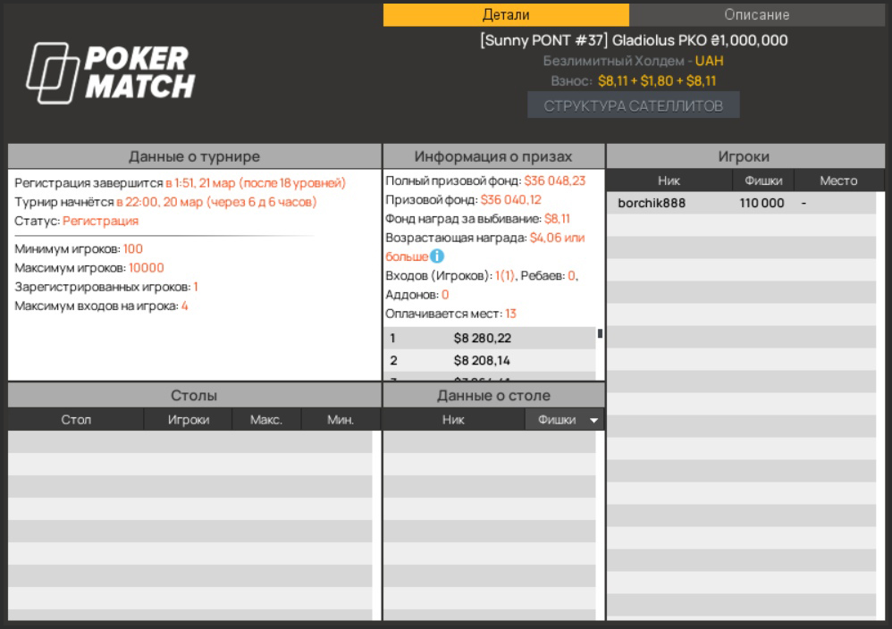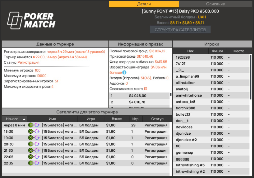 12 и 13 марта на PokerMatch весьма успешно прошли 8 турниров серии: за счет большого количества входов (в среднем — 669 на турнир), мульти-энтри, ребаев и аддонов в них не было оверлеев.