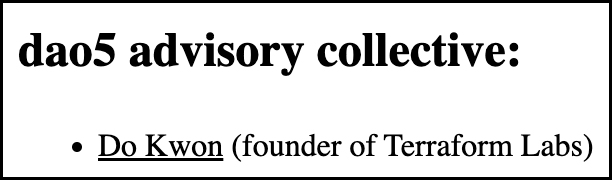 Один из найденных им адресов отправил деньги на адрес Ethereum, которому принадлежит имя ENS «dao5.eth». В число советников dao5 как раз входит До Квон.