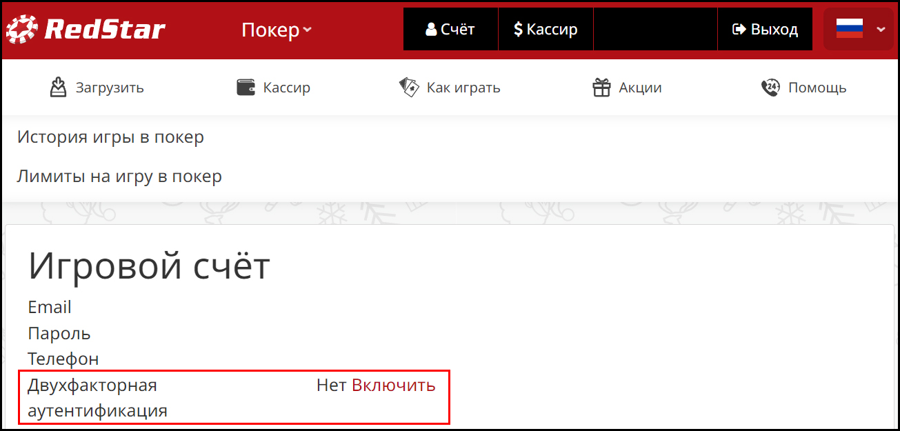 Под конец 2022 рум добавил для игроков дополнительный метод защиты аккаунта — 2-факторную аутентификацию через Google Authenticator и аналоги.