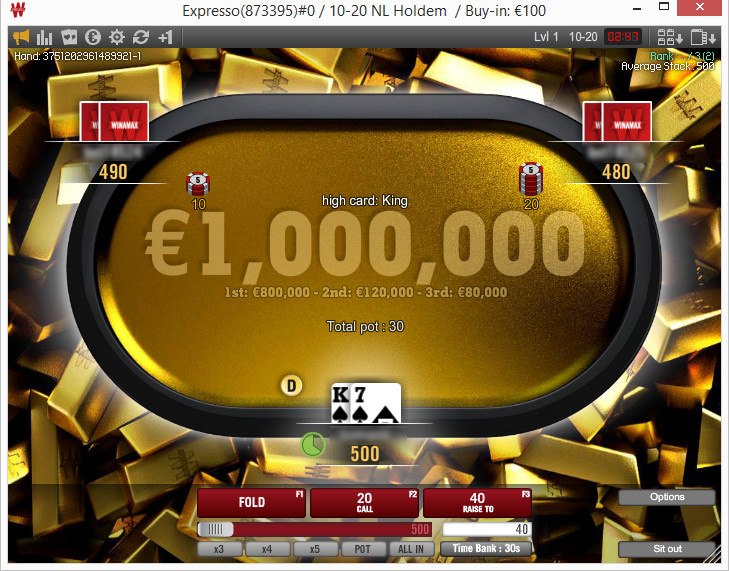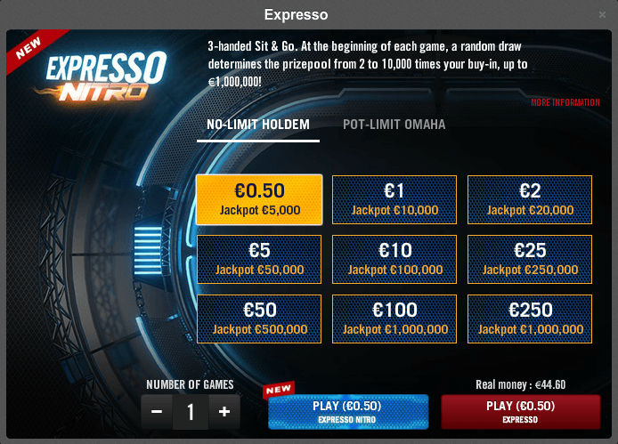 На Winamax имеются турбированные и гипертурбированные турниры Spin`n`Go под названием Expresso и Expresso Nitro. Вы сами выбираете скорость играемого турнира вне зависимости от бай-ина. Winamax славится своими приятными составами. Из недостатков — отсутствие возможности играть из РФ.