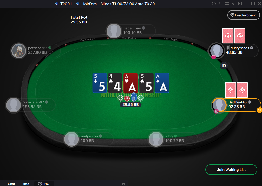 Также рум запустил новые лидерборды для кеш-игроков — вместо одного общего на CoinPoker появились ежедневные четырёхчасовые CoinRaces, которые идут весь день в шесть этапов и гарантируют разные призовые в зависимости от времени суток и лимита.