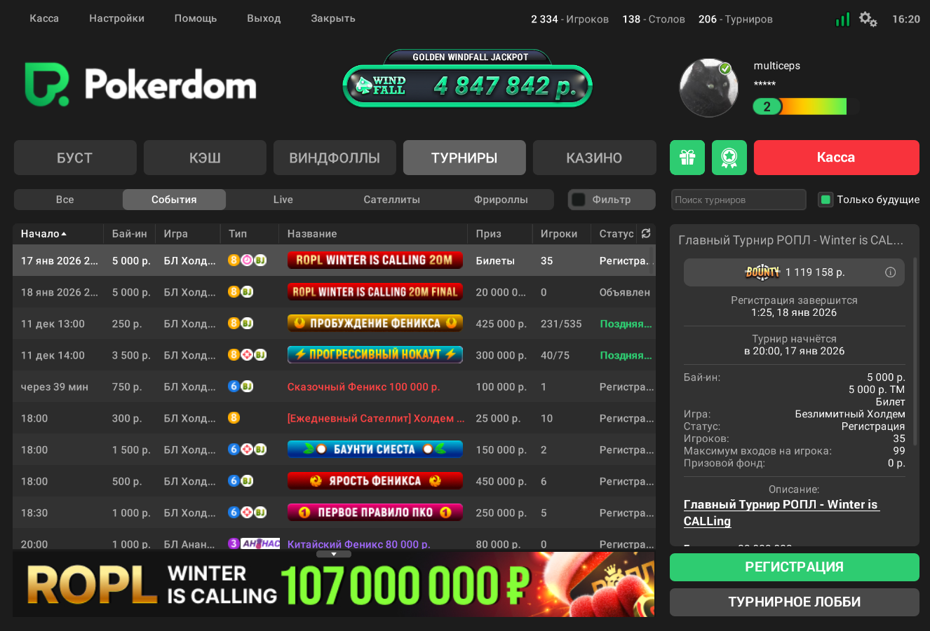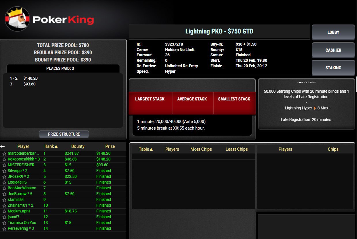 Сеть также прислушалась к многолетним жалобам на изнуряющую длительность поздней регистрации — и сократила её в большинстве турниров, запустив бонусом ещё и особые Lightning PKO с ускоренной структурой: