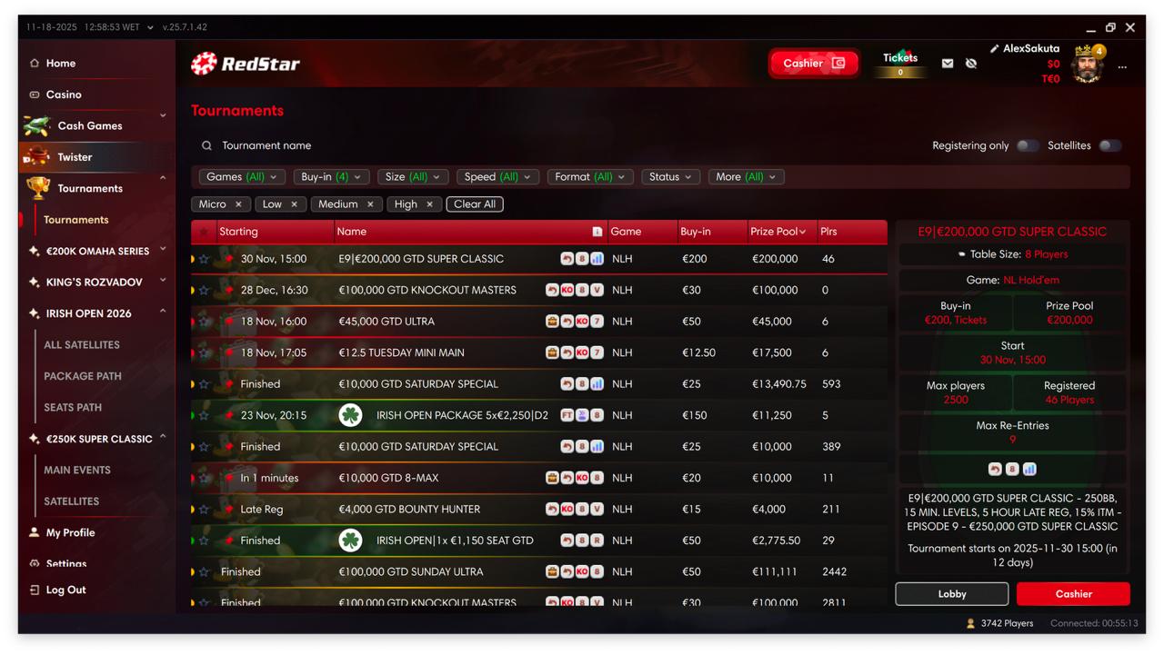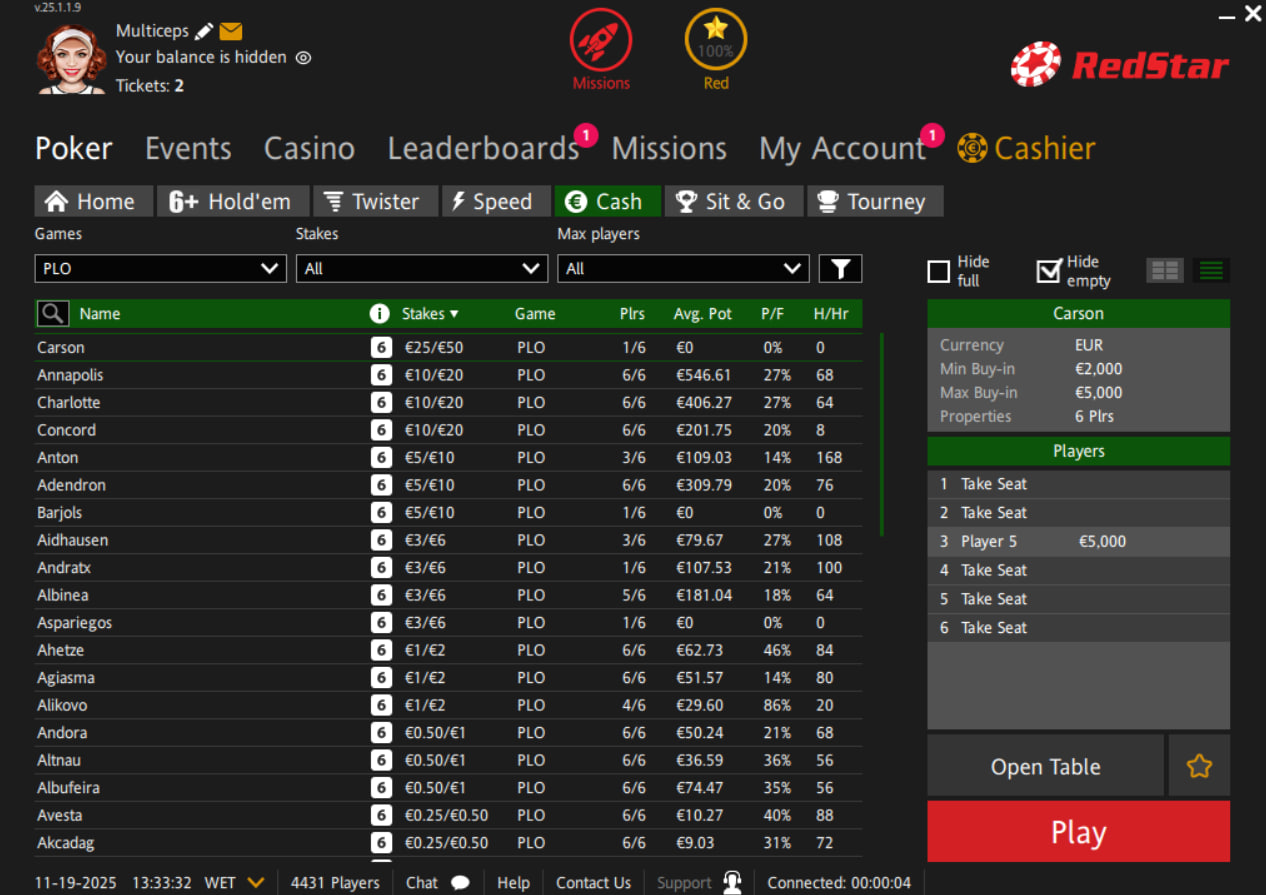 Вместо трёх турниров за $5, $15 и $50 с максимальным джекпотом $1,000,000 с 3 декабря 2025 в руме стали доступны пять: