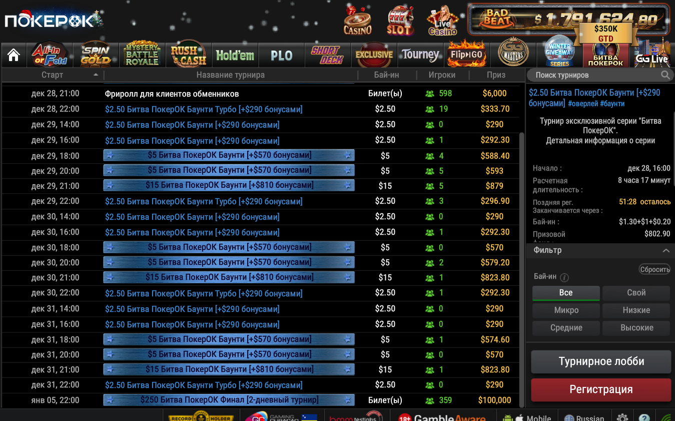 В турнир-финал нельзя сесть напрямую — попасть в него можно только по билетам, выигранным в других турнирах Битвы ПокерОК или купленным за социальную валюту ПокерОК — PokerBitOK.