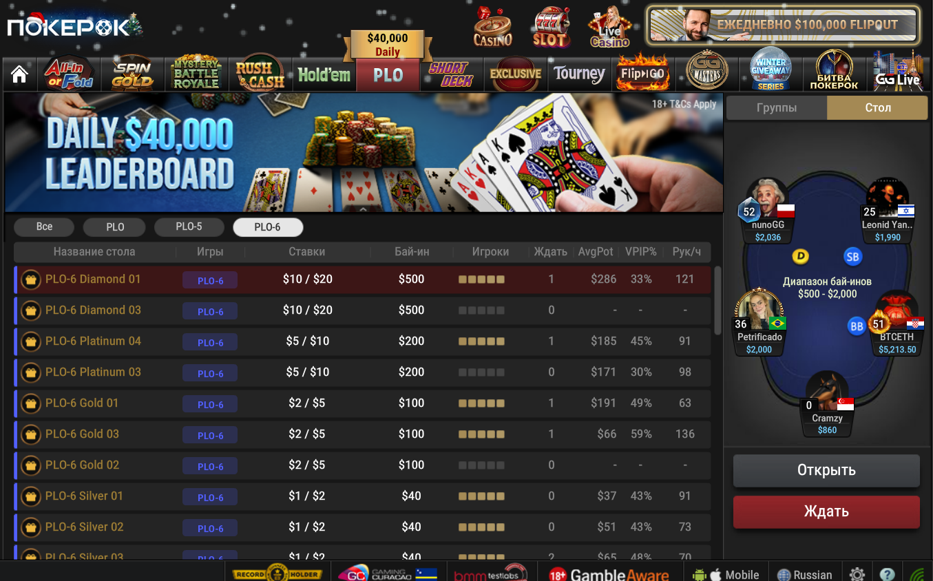 В октябре ПокерОК расширил предложение для кешевиков за счёт кеш-столов по PLO6: