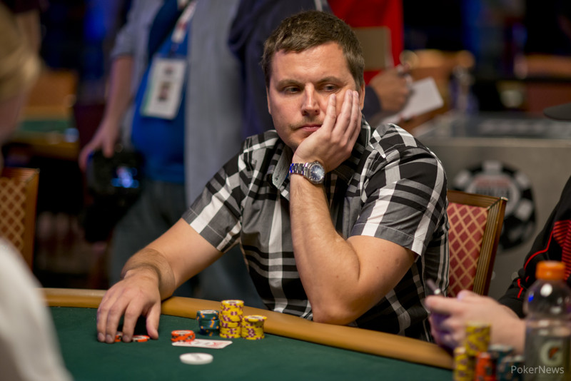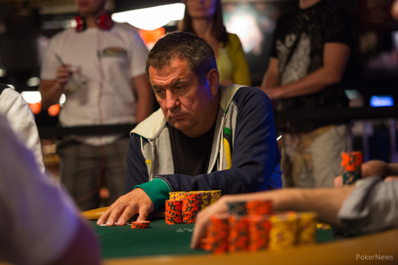 Наши игроки, увы, на первых ролях замечены не были по причине банальной “нехватки картона”. Как только у Кирилла и Сергея на руках что-то появлялось, дилер не давал ничего адекватного оппонентам. В итоге, стеки наших игроков таяли, а оппоненты вылетали один за одним, усилия лидеров. Закончилось это, самое обидно, и вовсе зарубой между обоими представителями России на финалке. Будучи уже с “проблемными стеками” Кирилл (на фото ниже) с A