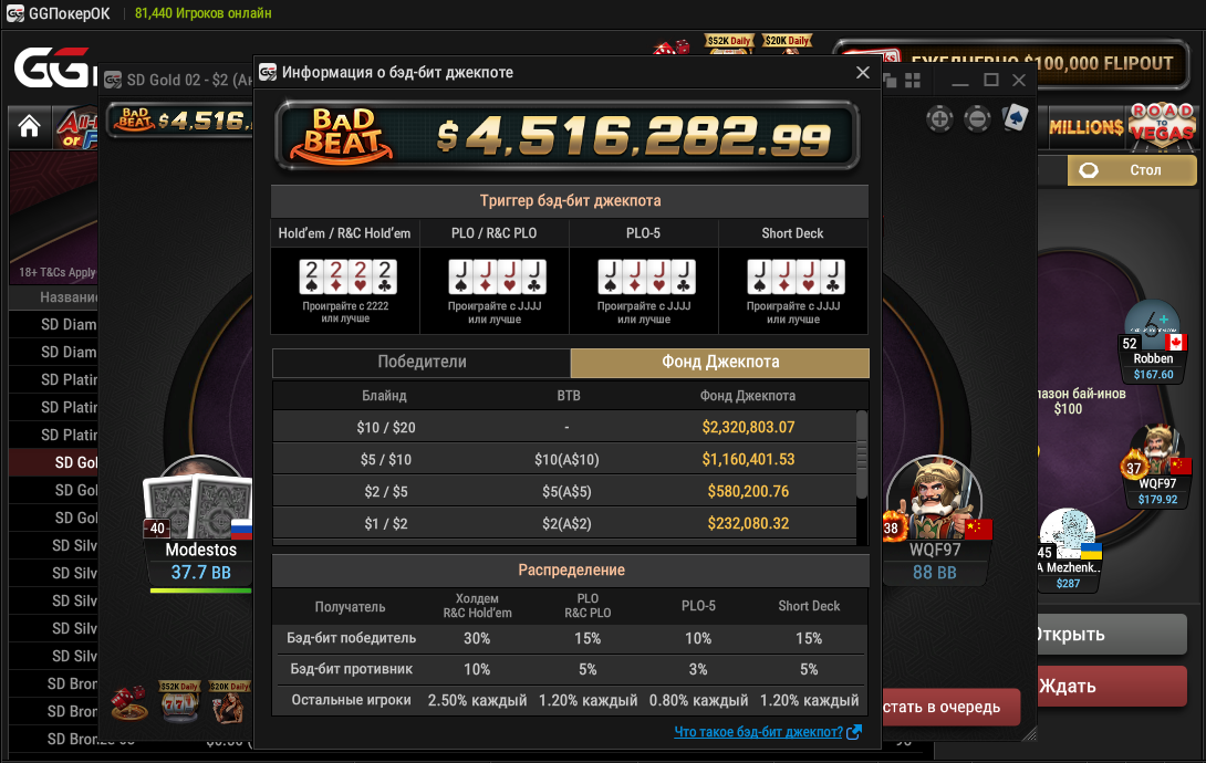 Правила Bad Beat Jackpot на GGПОКЕРОК и максимальный джекпот в истории рума