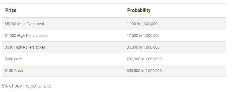 Билеты в Main Event и другие турниры серии за $1,050 и $530 разыгрываются в специальных Spin&Go с бай-ином $75 (рейк = 5%).