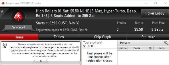 Для игроков низких лимитов, желающих присоединиться к хайроллерам, представлена значительная сетка ежедневных сателлитов от $5.50. Каждый из них является ступенью к более дорогому турниру вплоть до самого дорогого сателлита за $530. Также PokerStars добавляет от себя дополнительные билеты в сателлиты на общую сумму более $50,000.