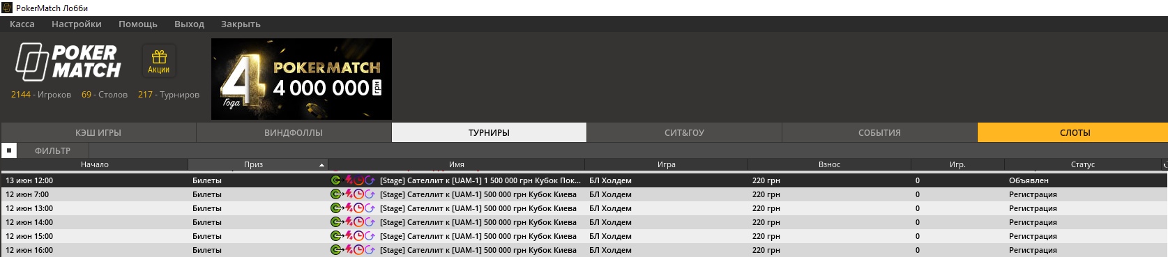 Регистрация в stage-сателлиты на Кубок Киева уже доступна в лобби PokerMatch, раздел «Турниры».