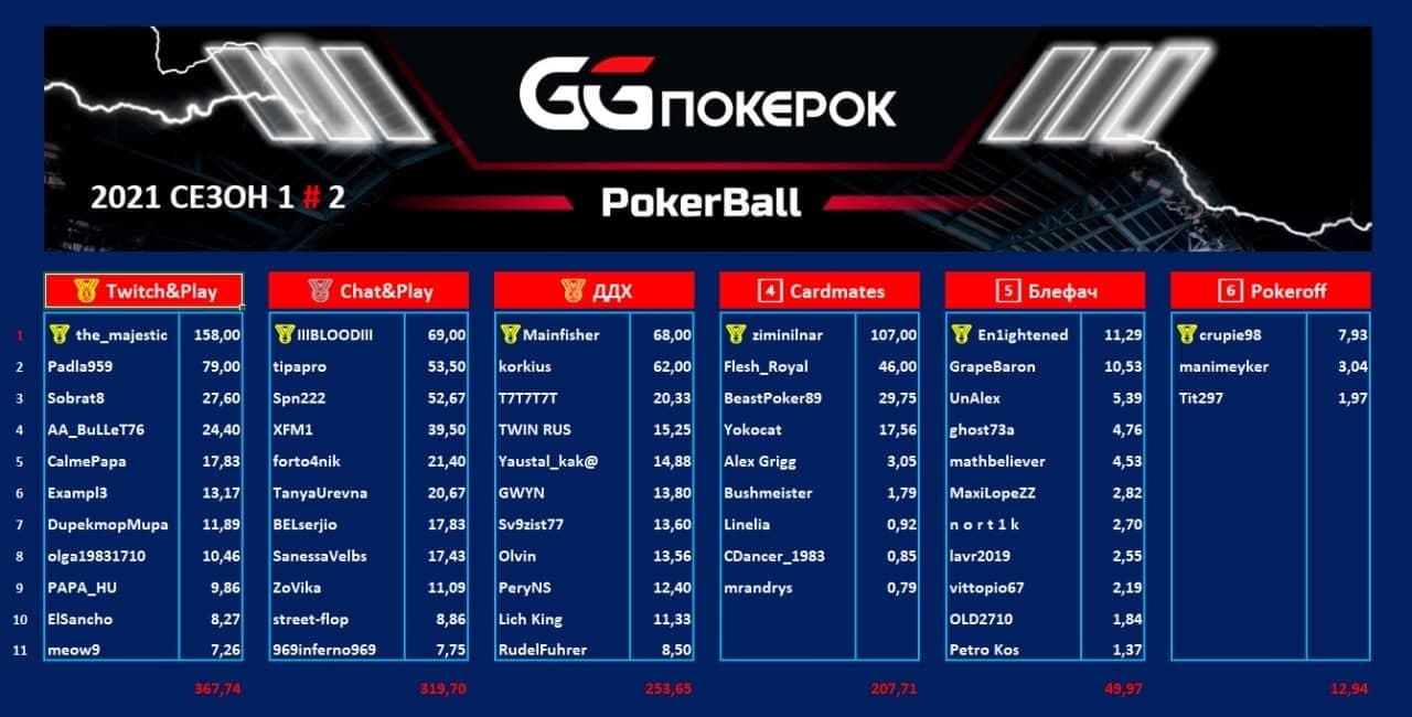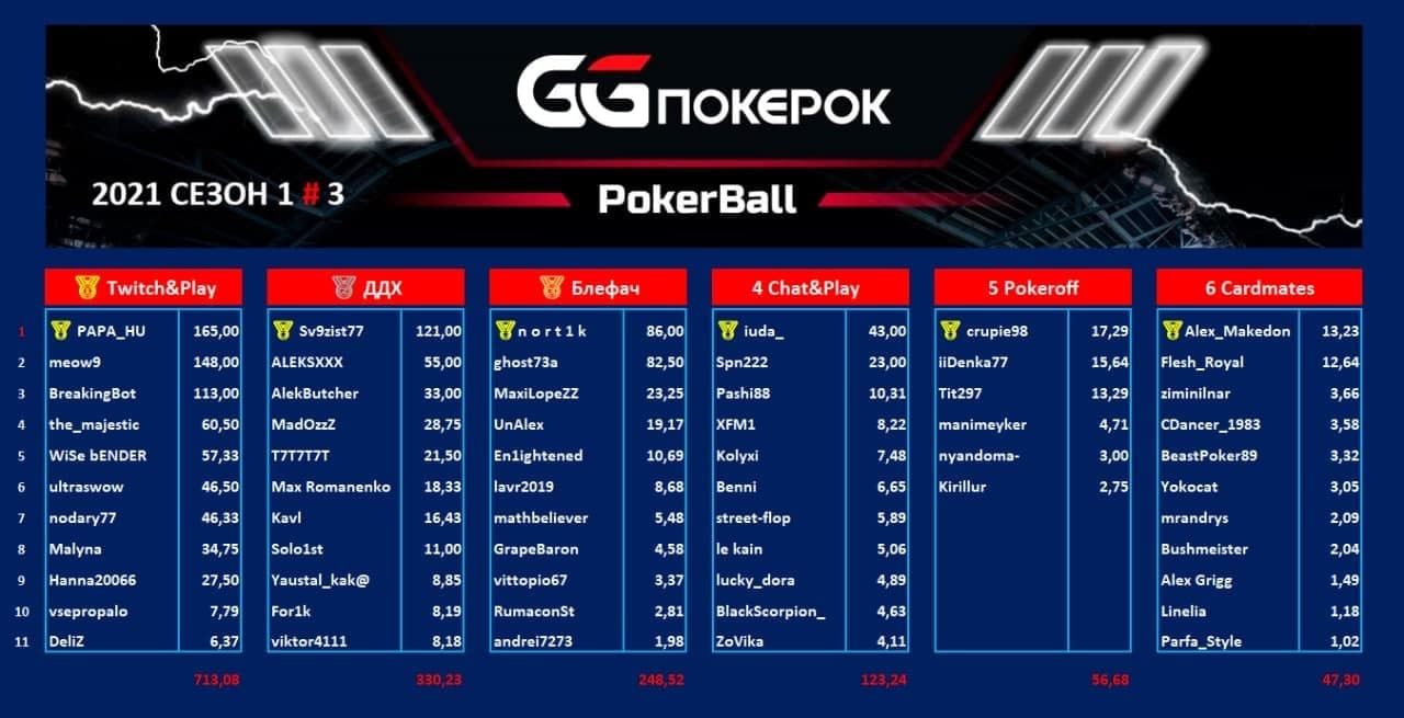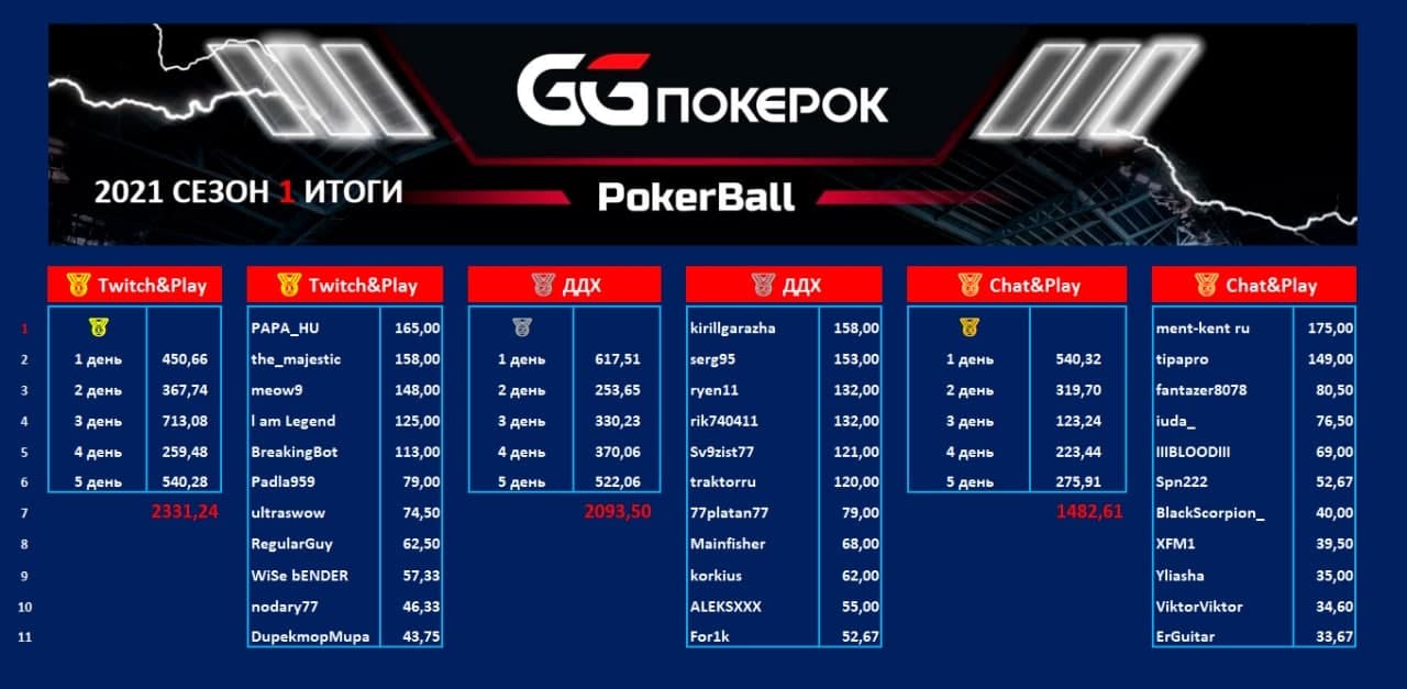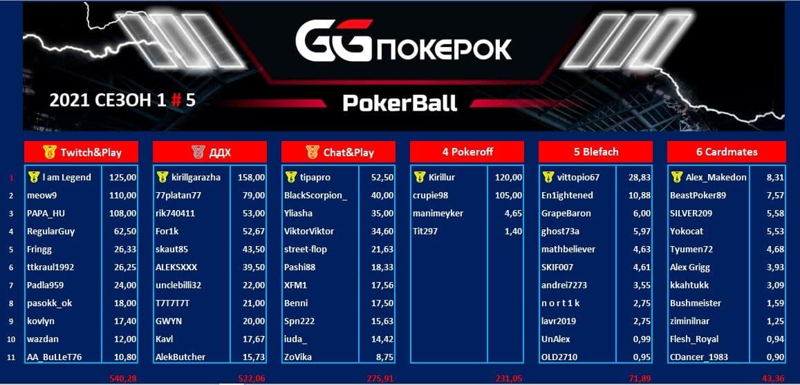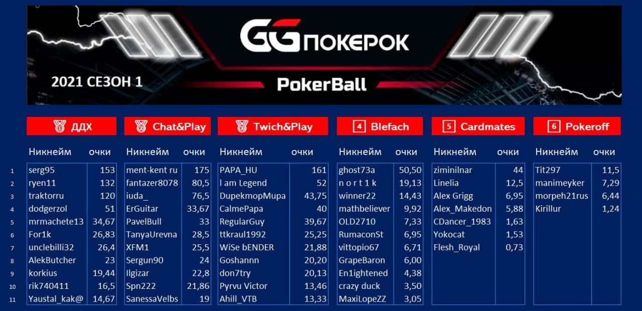 Покерофф лишь на пятом месте, и первый сезон явно не за нами. Зато вы можете присоединиться к нам на следующей неделе и стать лучшим в нашей команде, за что вас наградят в рамках акции PokerBall.