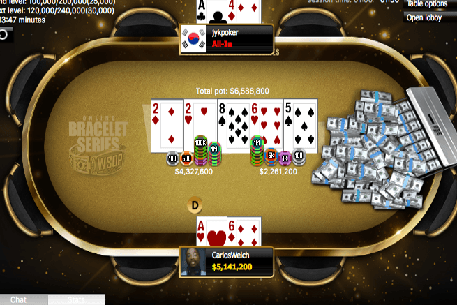 Карлос Уэлш стал победителем $888 Crazy Eights на WSOP Online на 514 игроков, получив $124,369. Мистер Уэлш — известный тренер, игрок и автор статьей о покере.