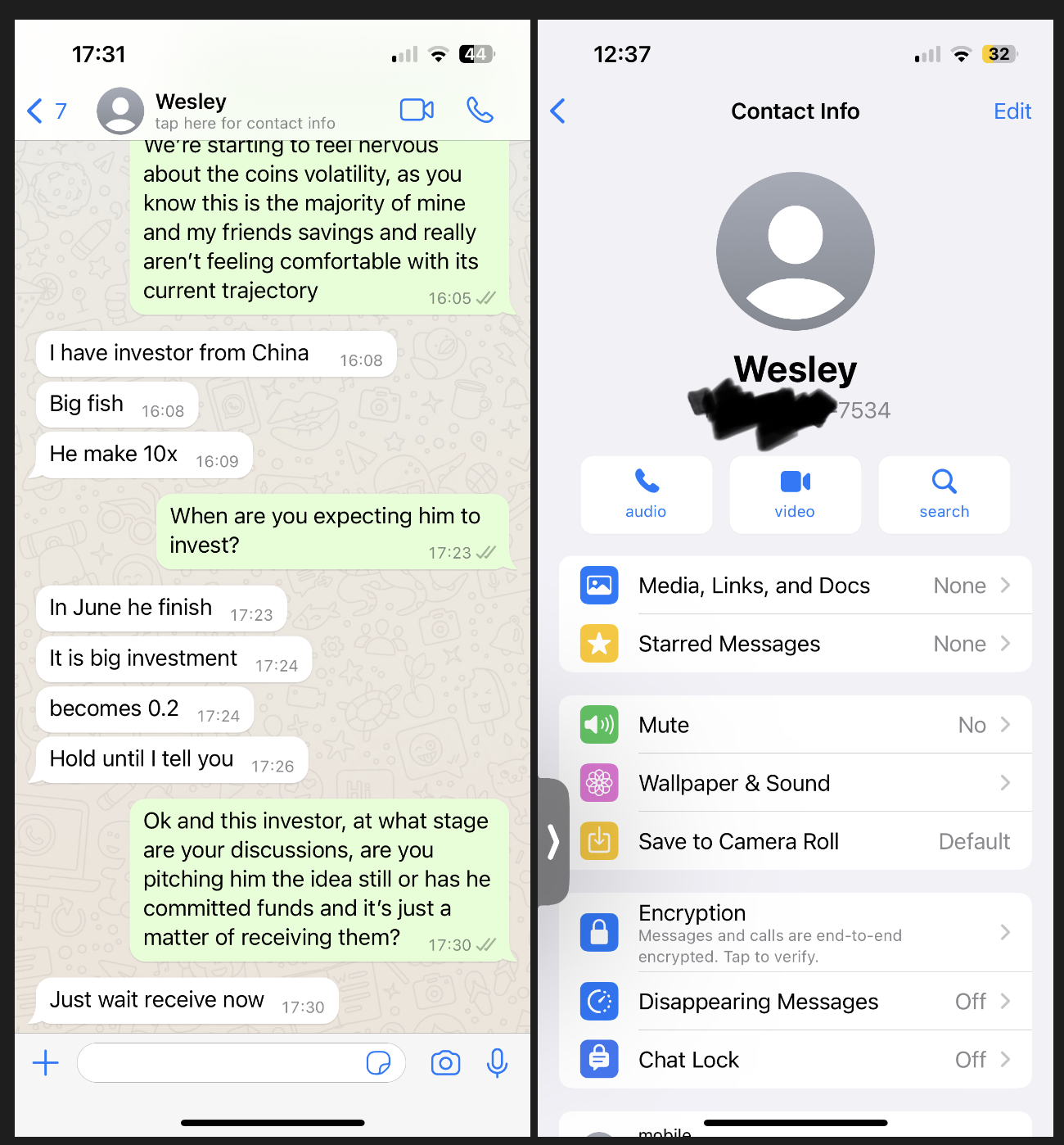 Мы попытались связаться с Уэсли, но он заблокировал наши номера и не выходил на контакт другими способами. Все наши диалоги в Telegram и WhatsApp были удалены. В этот момент мы поняли, что он нас заскамил.