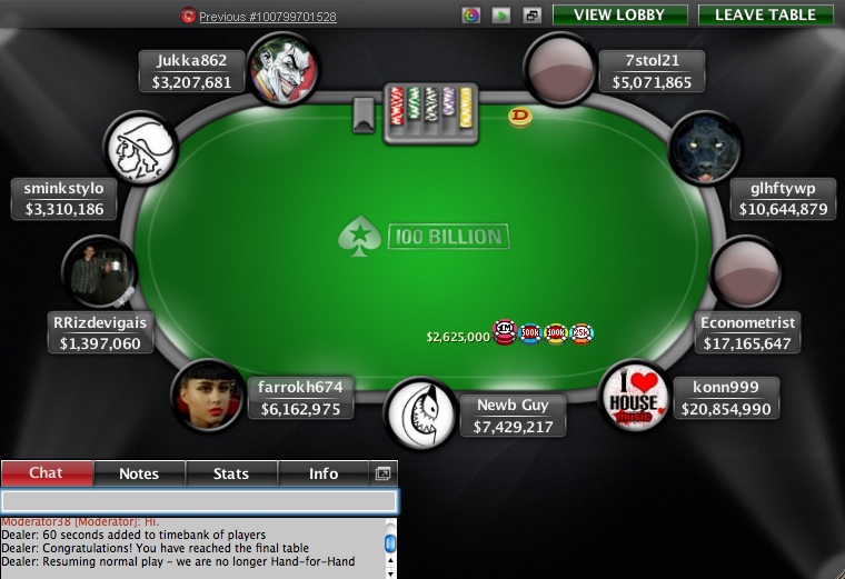 В минувшие выходные на PokerStars завершилось празднование 100-миллиардной раздачи. Все, кто в течение месяца тем или иным способом смогли заработать право участия в Ultimate Freeroll, приняли участие в этом уникальном событии – розыгрыше миллиона долларов в бесплатном турнире. Больше 50 000 человек вышли на старт, и в топ-4 оказались четверо, затеявших дележку. Крупнейший куш сорвал эстонец konn999, а победителем в итоге стал украинец 7stol21. На третьем месте финишировал российский тренер школы покера PokerStarter Алексей "glhftywp" Шемякин. Наши поздравления!