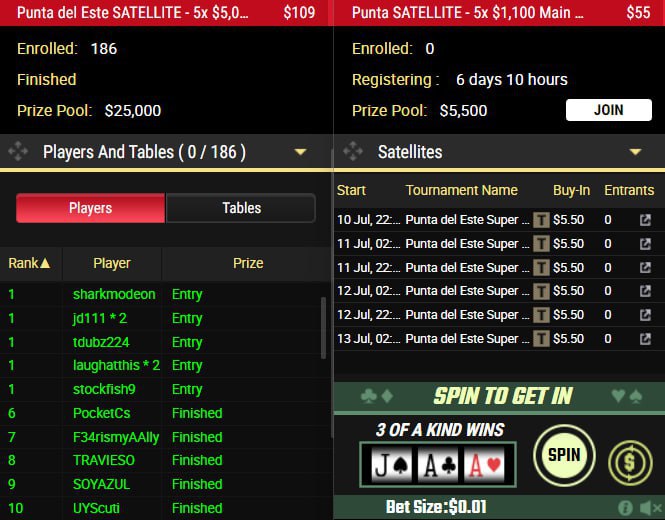 Утром на PokerKing закончился $109 Punta del Este SATELLITE с гарантией 5 пакетов по $5K на $1,1K Main Event серии Enjoy Poker, которая пройдёт в Уругвае с 23 по 27 июля.