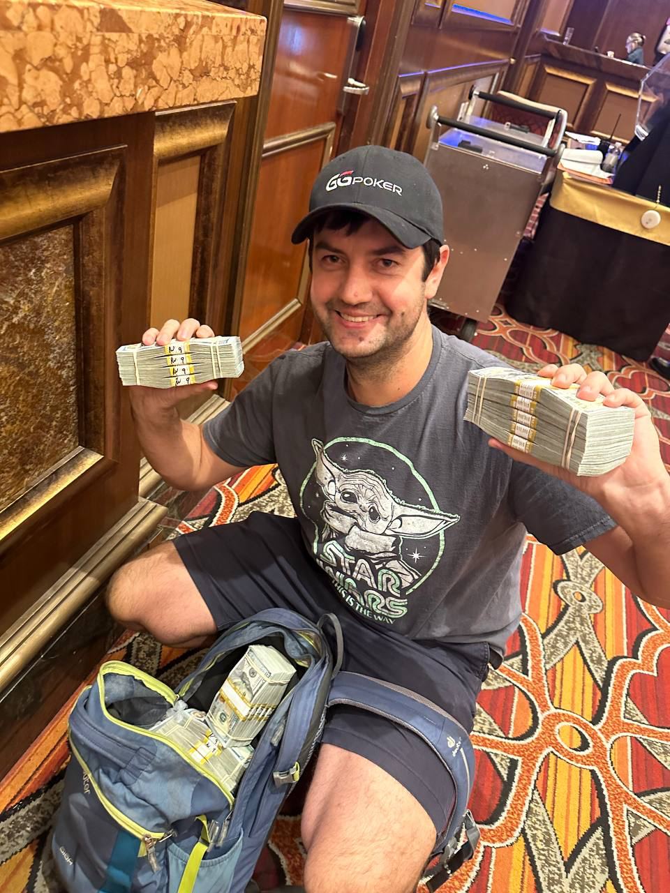 9 июля он вытащил $50K в упомянутом ранее $1,600 WPT Mystery Bounty, а 10 июля— топовый баунти $200K в $2,500 NLH Mystery Bounty DeepStack Venetian.