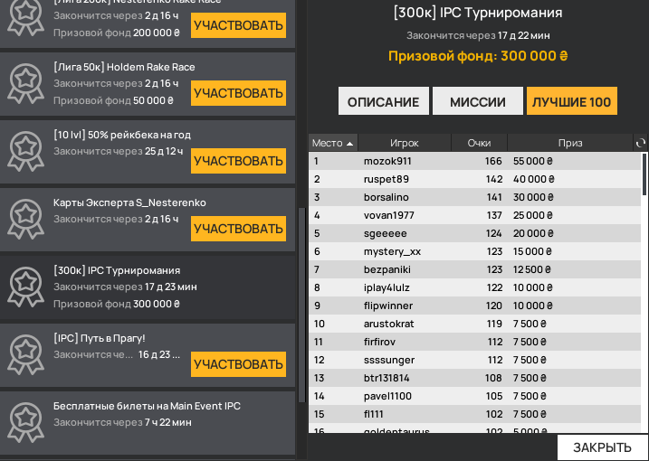 Лучшие игроки лидерборда IPC Турниромания на момент публикации (5 ноября):