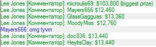 Каждый из игроков гарантировал себе $10200, что легко увидеть на скриншоте, а победителю должны были достаться сочные $103800.