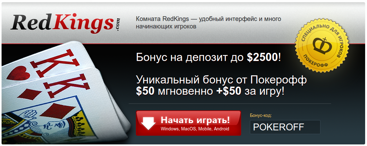 Всё это означает, что играть, например, в RedKings от Покероффа стало ещё выгоднее, поэтому грех будет не воспользоваться таким предложением: