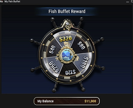 Пример: когда вы заработаете 60K FP (~$6000 рейка) за 30 дней, вам дадут статус Осьминог. У вас будет возможность вращать рулетку, где может выпасть приз от $60 до $360. Подробнее ознакомиться с уровнями лояльности Fish Buffet и наградами за вращение рулетки можно в отдельном материале.