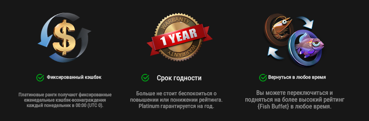 В рамках этого материала нас интересует фиксированный еженедельный рейкбек в Fish Buffet. Чтобы получать его, нужно переключиться на него вручную в любое время.