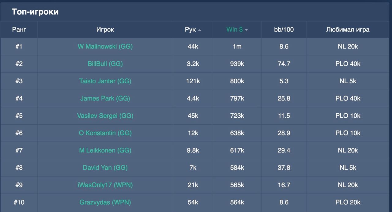 StatName трекает кеш-игроков PokerStars, 888poker, Chico, GGPoker, WPN, iPoker, PokerBROS. Стоимость подписки от $13 в месяц.