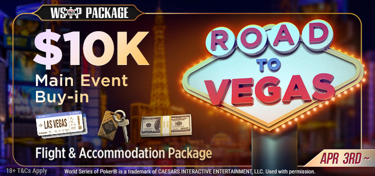 Первый шаг в акции доступен каждому всего за $1. «Road to Vegas» продлится в комнате PokerOK до 3 июля. По сути, акция представляет из себя три отдельные лесенки сателлитов, главный приз в которых — пакет участника WSOP Main Event (бай-ин + $2500 на транспортные расходы).