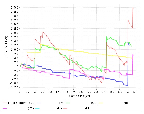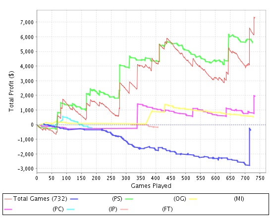 Текущее положение дел - 8.3к банкролл и цель в 10к. Относительно прикидкам Макса (удовение БР каждый месяц) опережаю график на месяц, так что можно считать что все идет более чем отлично. Что будет после того как дойду до 10к только Максу, Богу известно пока не ясно. Скорее всего спущусь по лимитам и продолжу гриндить:)