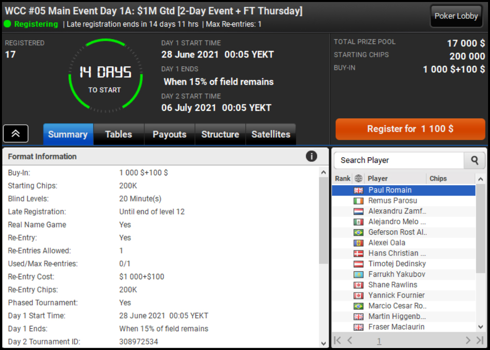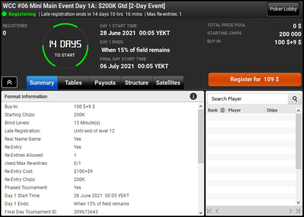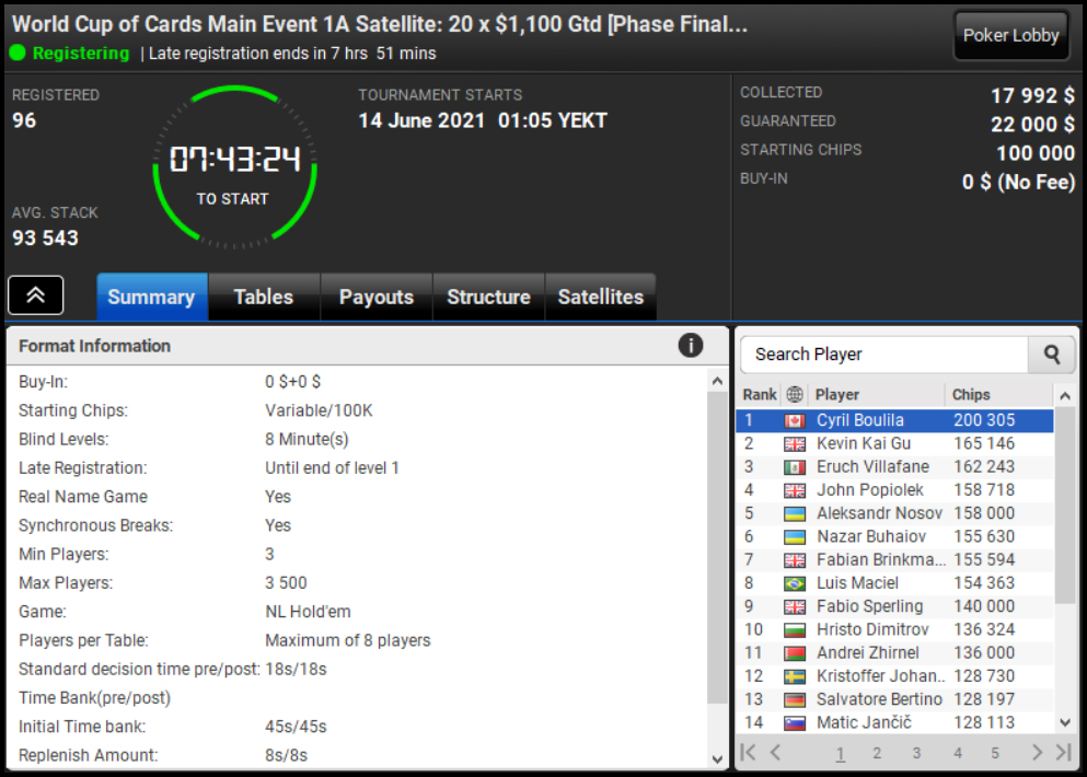 Других сателлитов в Главное событие нет, так что не упустите возможность пройти отбор в ивент за $1,1K с 1 цента.