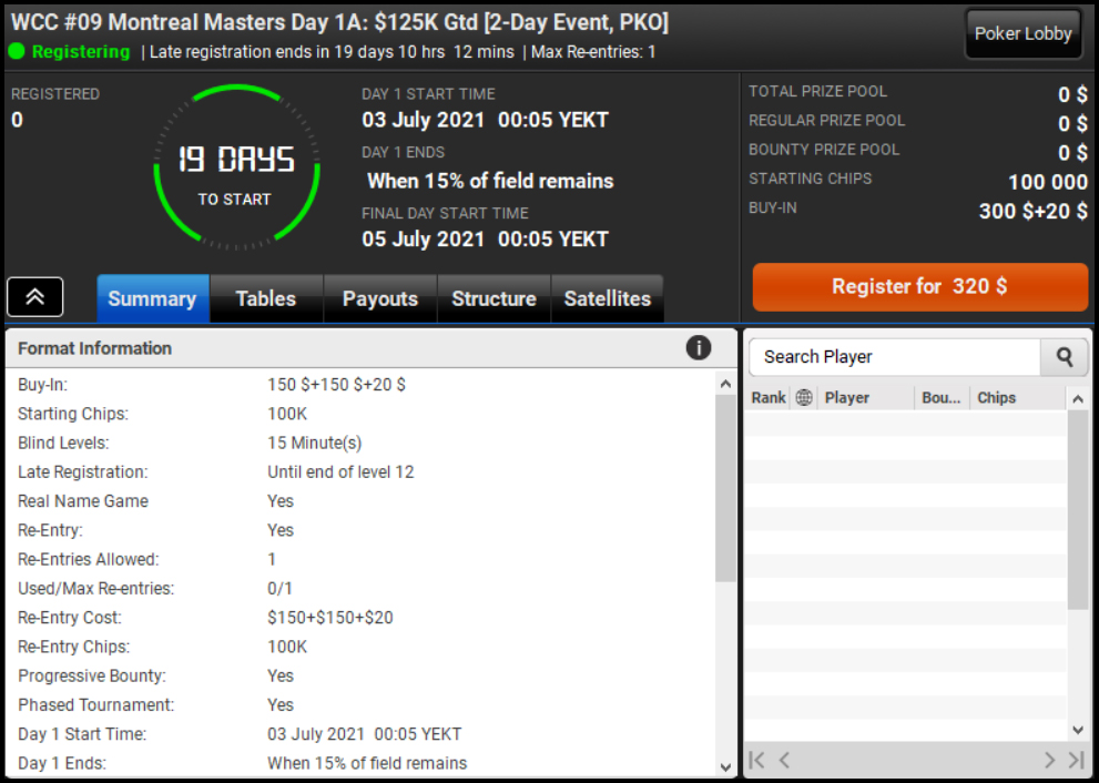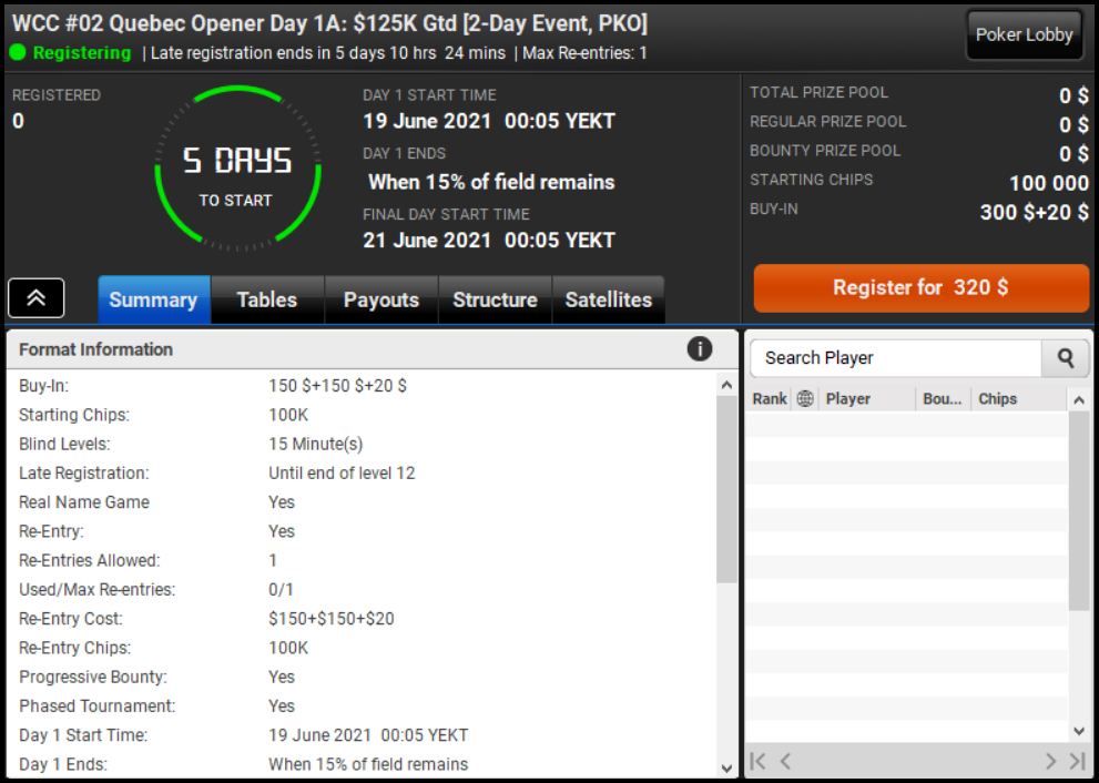 | Mount Royal 6-Max | $109 | $25K | 1 июля в 23:05 |